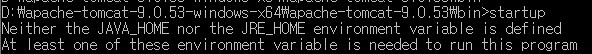 cmd 창에서 startup 파일을 실행을 해 보니 JAVA_HOME과 JRE_HOME이 설정이 안되어 있다고 나오면서