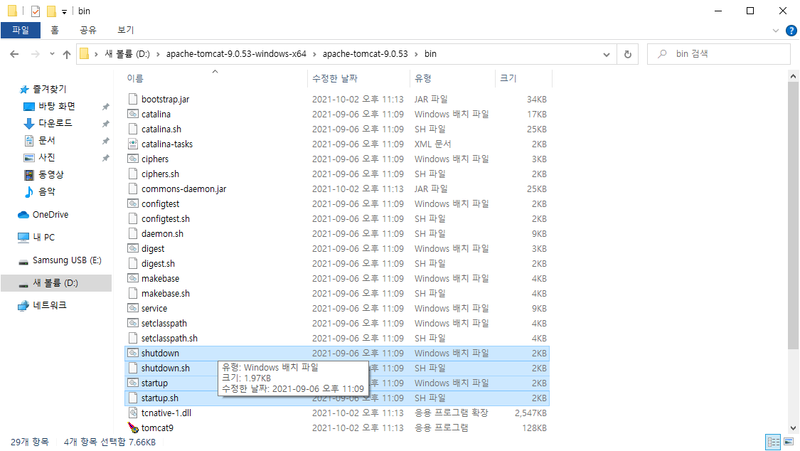 shutdown.sh, startup.sh 파일의 경우에는 SH 파일이라고 되어 있습니다.